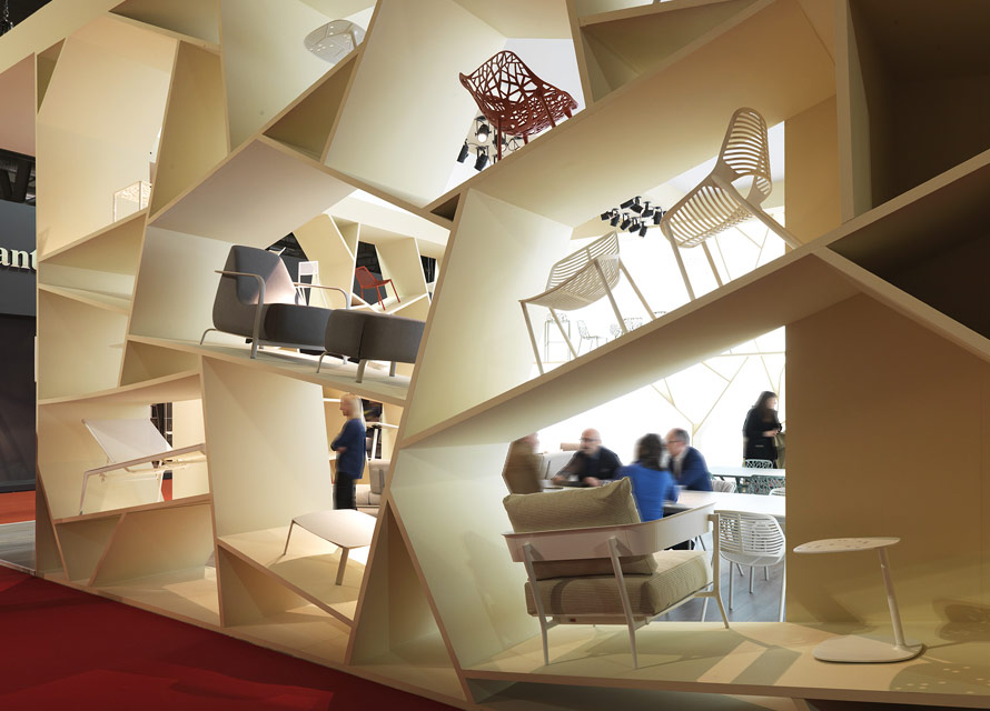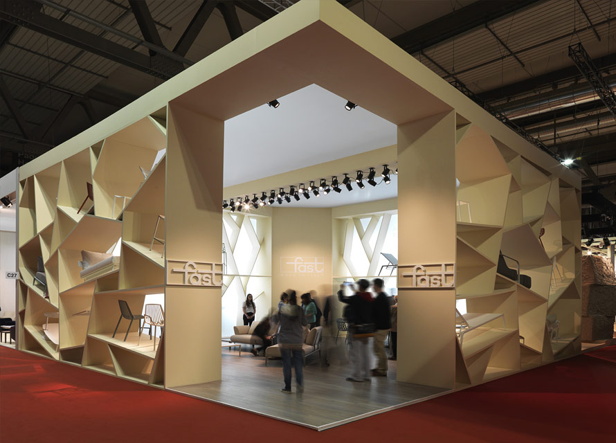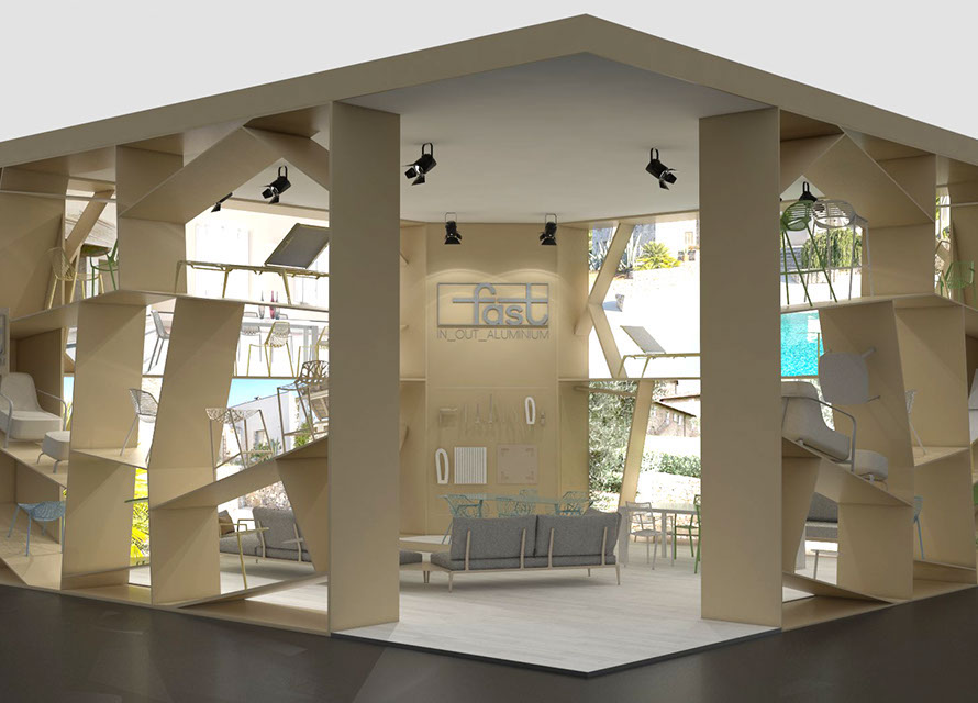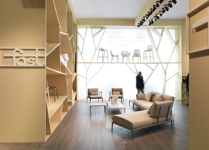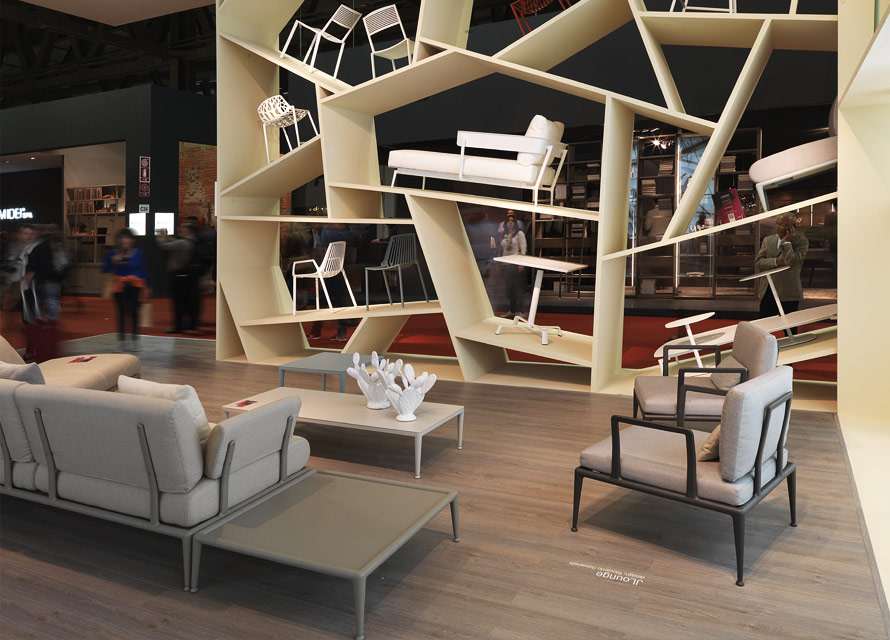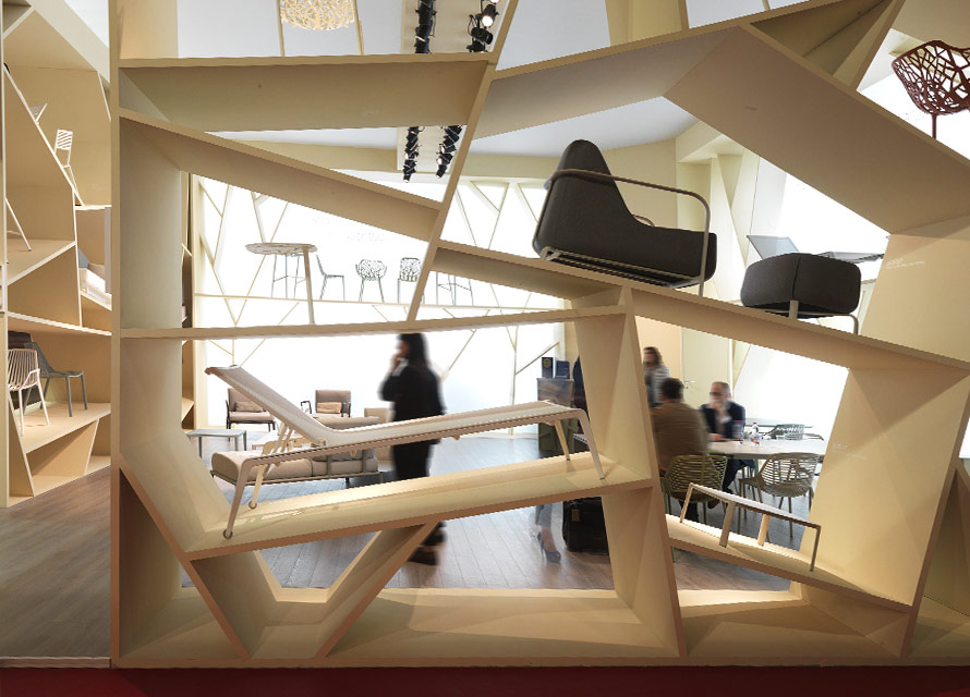 Stand realizzato per il salone del mobile sviluppato creando un filo continuo con i sistemi espositivi per gli showroom e la precedente fiera parigina di Maison & Object.