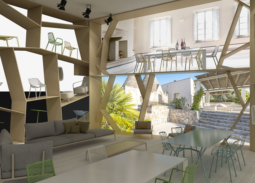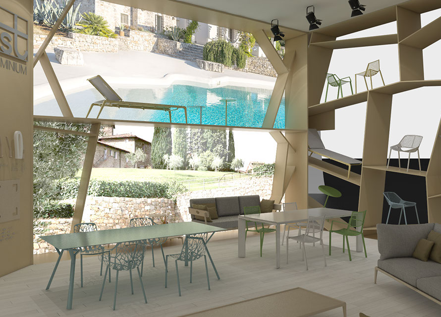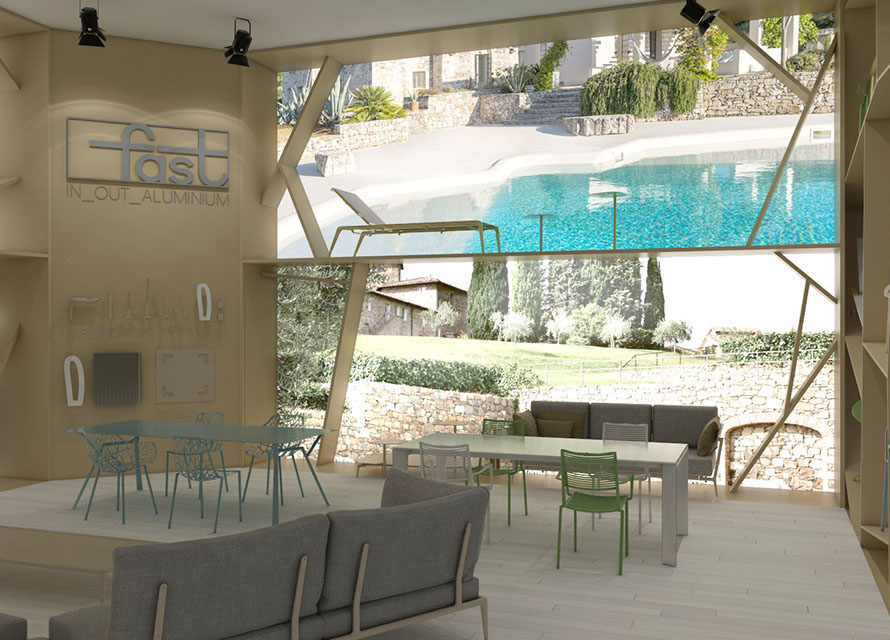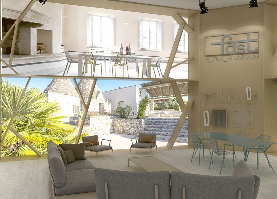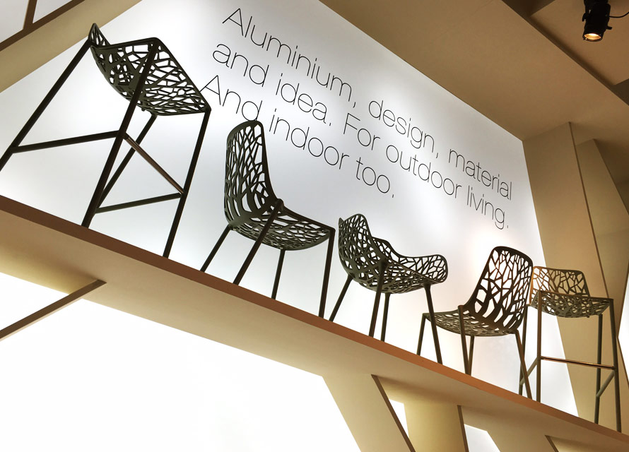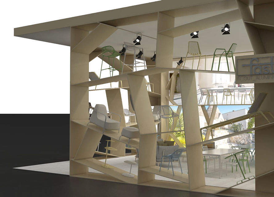 Stand realizzato per il salone del mobile sviluppato creando un filo continuo con i sistemi espositivi per gli showroom e la precedente fiera parigina di Maison & Object.