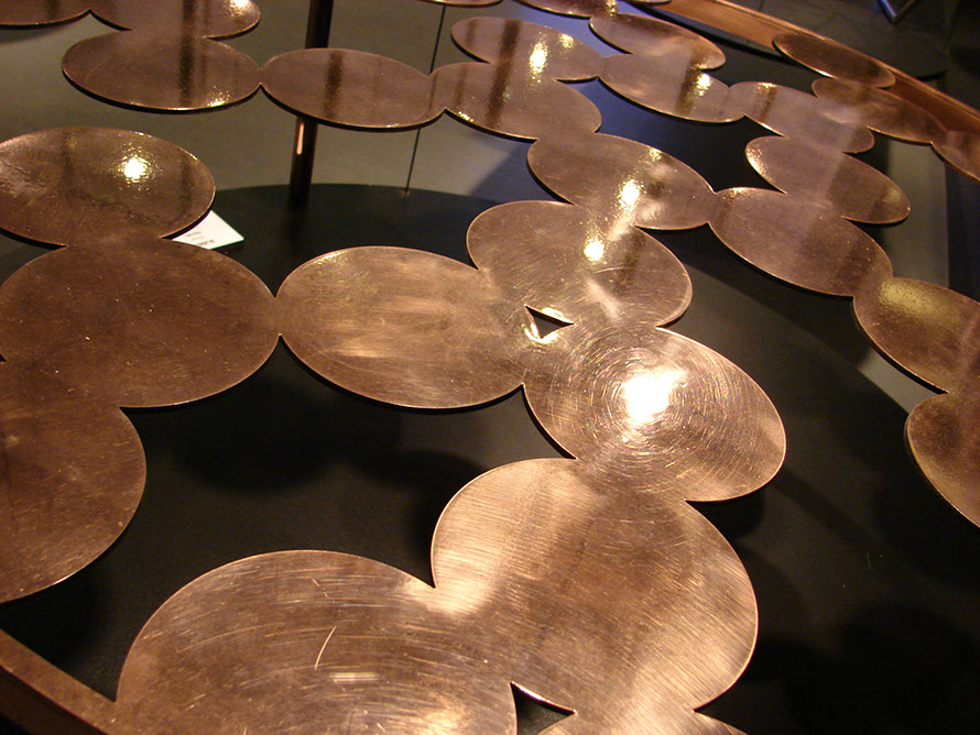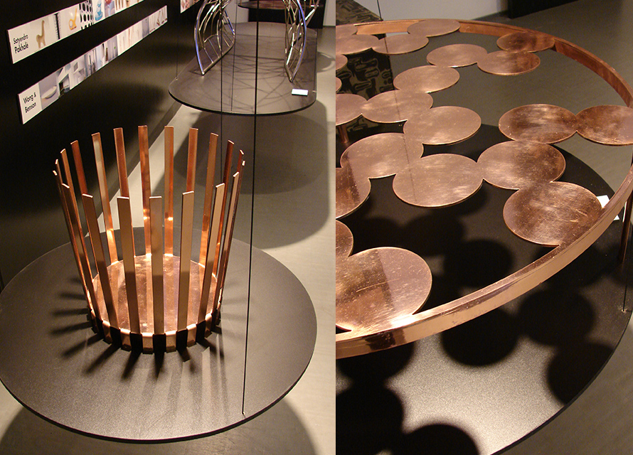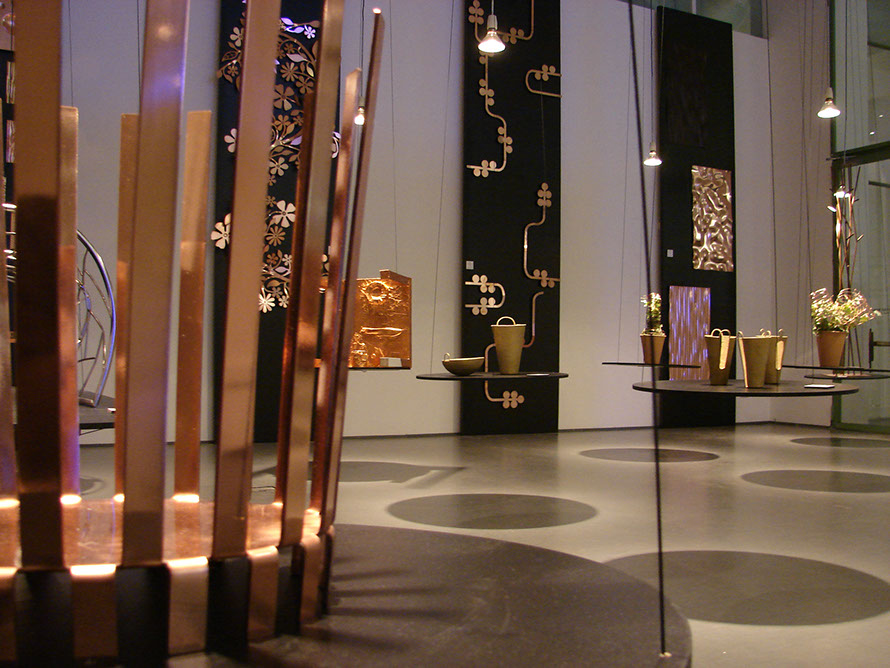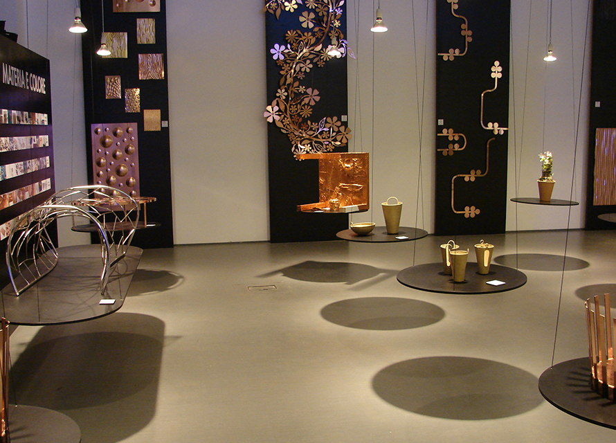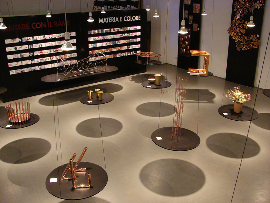 In occasione della premiazione del concorso biennale di progettazione con il rame, è stata realizzata una installazione allo spazio di Material ConneXion con piani sospesi e illuminati dall’alto per creare suggestive ombre a terra.
