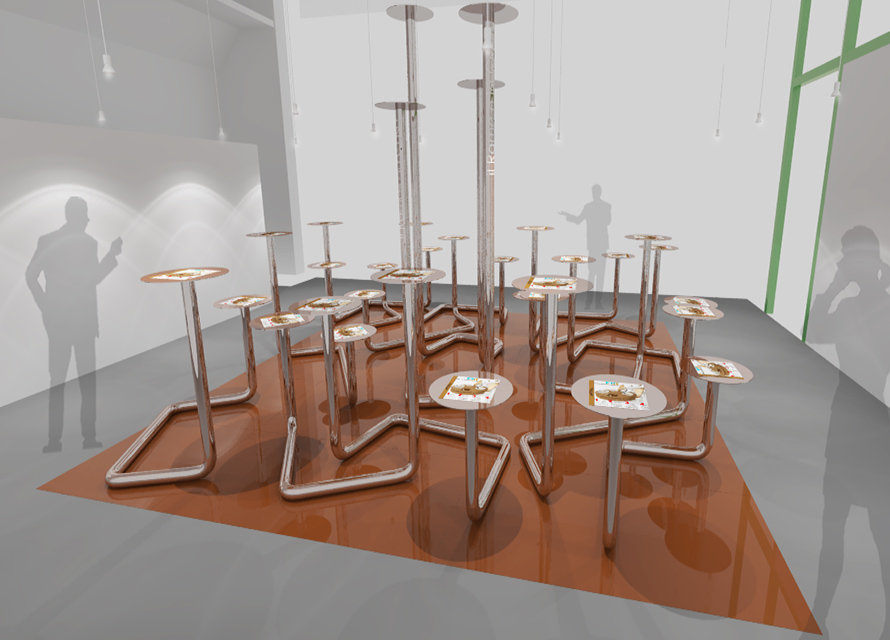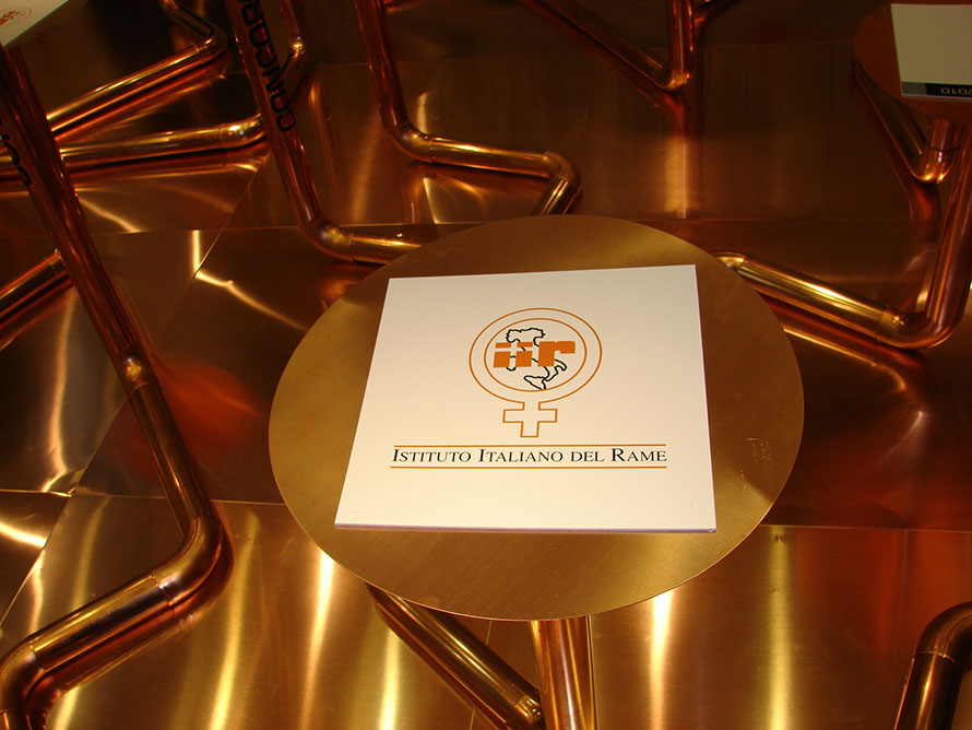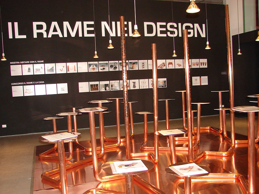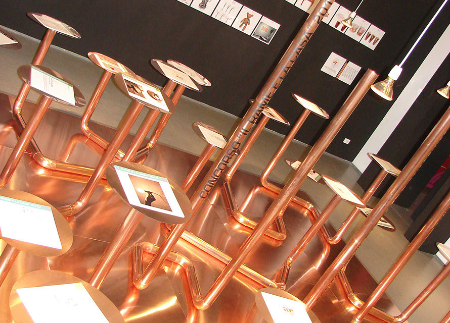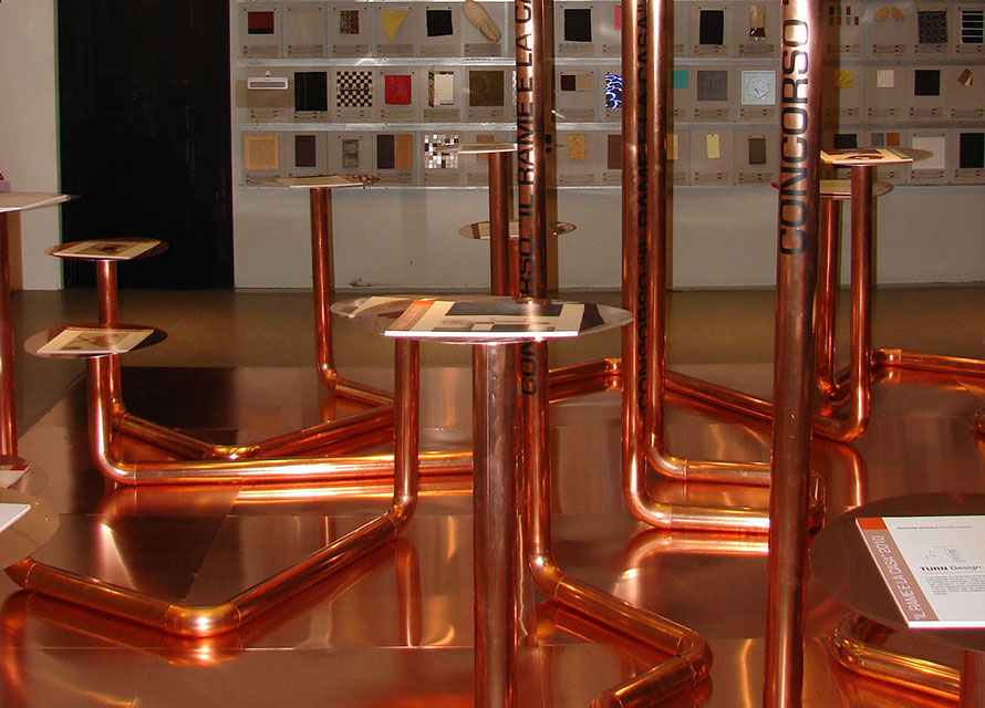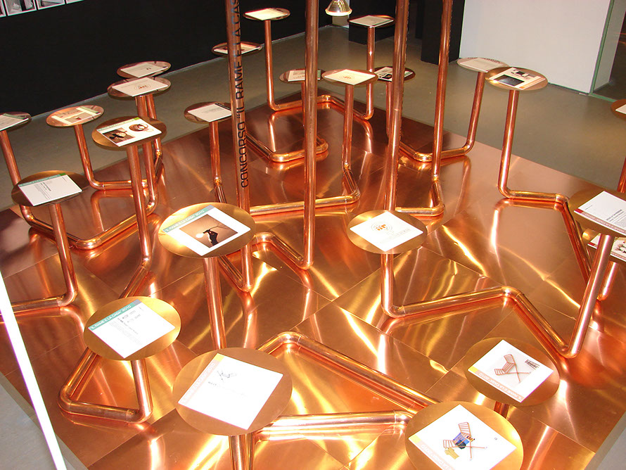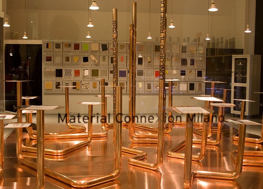 In occasione della premiazione del concorso biennale di progettazione con il rame, รจ stata realizzata una installazione allo spazio di Material ConneXion con pluviali e lastre di rame.