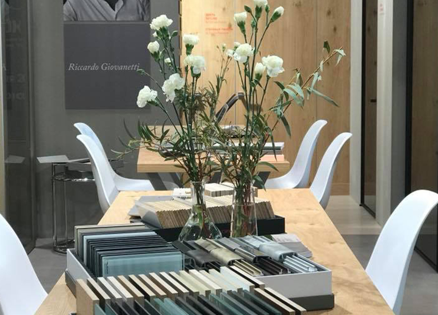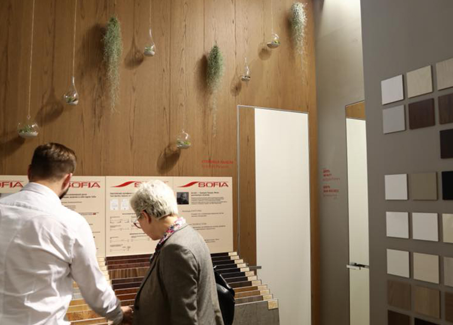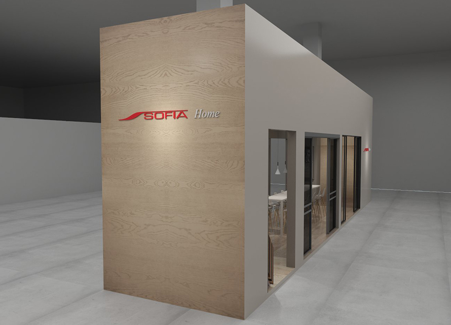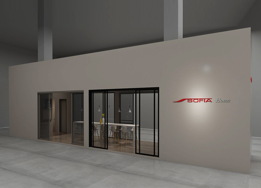 Stand a pianta rettangolare, realizzato per la fiera ArchMoscow di Mosca. L’azienda Sofia, produttrice di porte, ci ha incaricati di realizzare un stand che esponesse il più possibile dei loro prodotti di fascia alta, tra cui gli scorrevoli, e che avesse anche una zona conversazione.