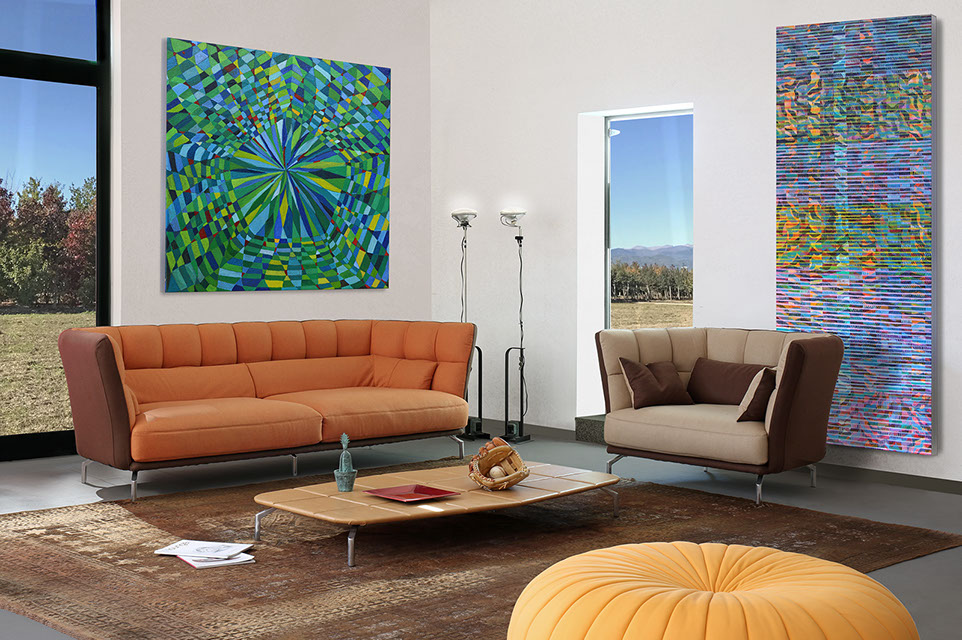 Sistema sofa imbottito con trama a quadri. E’ possibile realizzare differenti composizioni, dal 2 posti con seduta sul medesimo lato, al 2 posti con seduta opposta, composizioni angolari , o con il 3 posti con o senza schienali. Anche in questo caso l’unico limite è la fantasia e lo spazio a disposizione.
