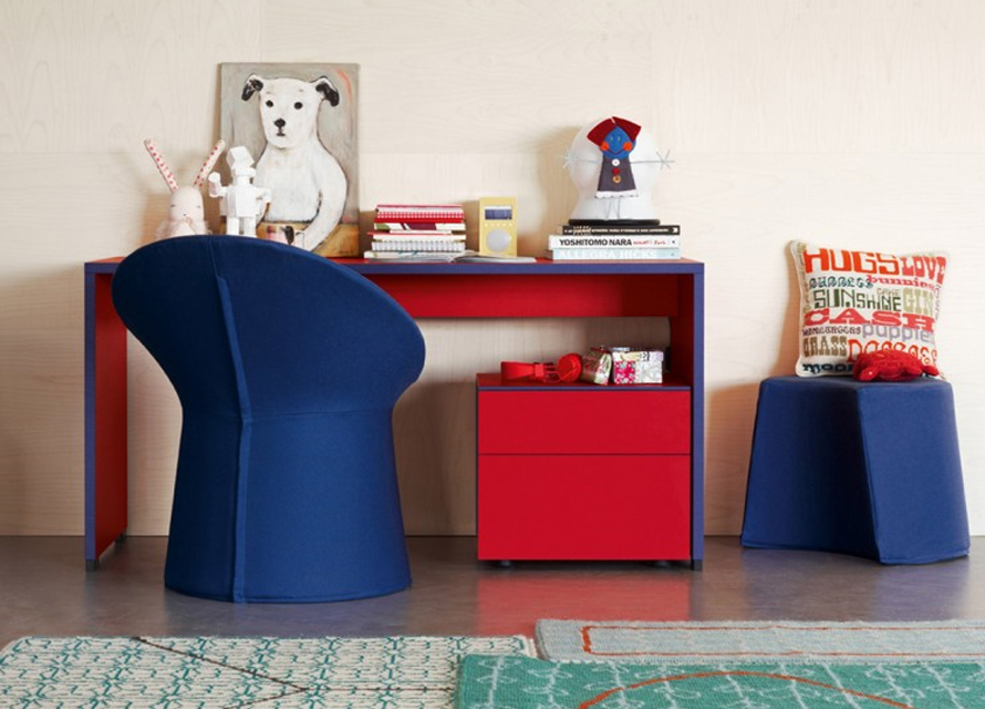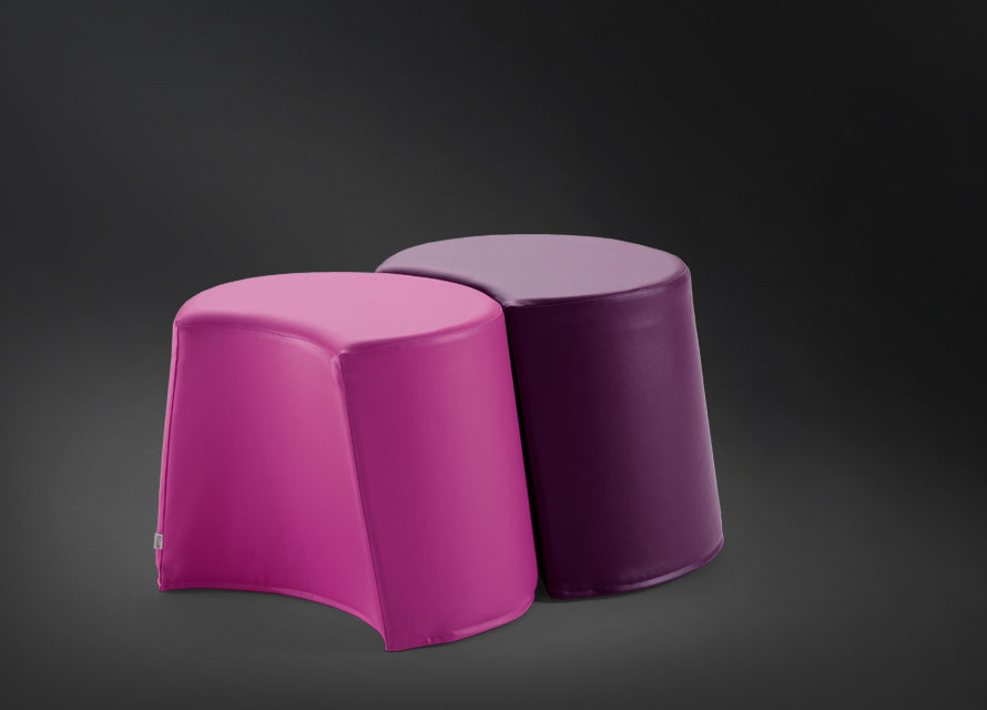 Alla poltroncina Remy è stato abbinato un pouf con la stessa forma alla base, ma tagliato al fine di poterlo accoppiare più facilmente.