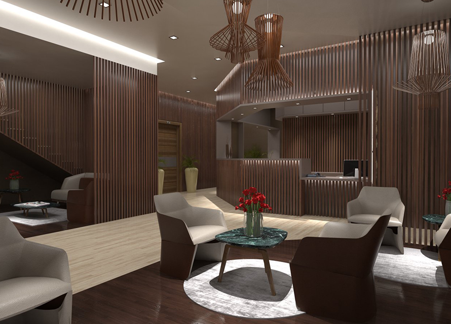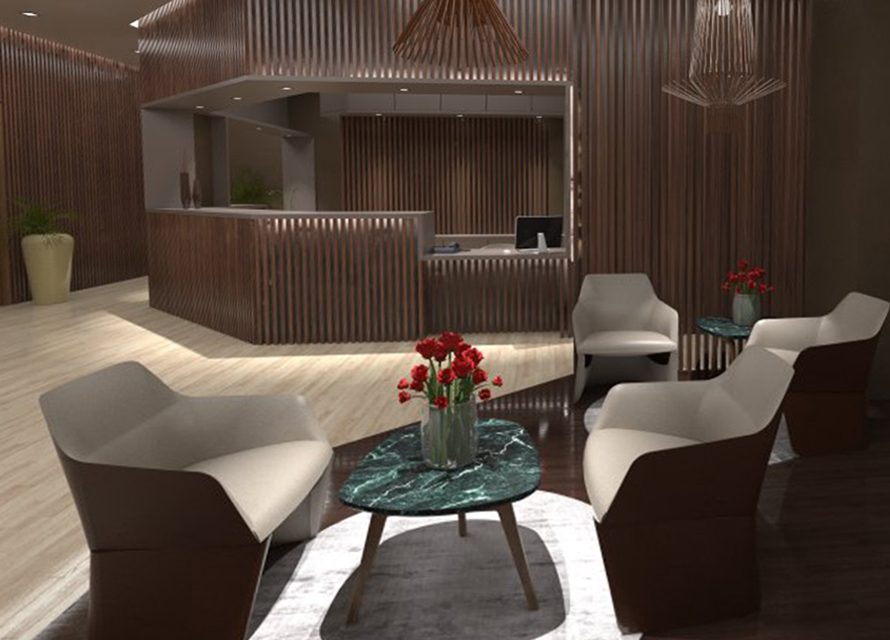 Allestimento delle area di ricevimento e di relax per i clienti in procinto di entrare o uscire della struttura.